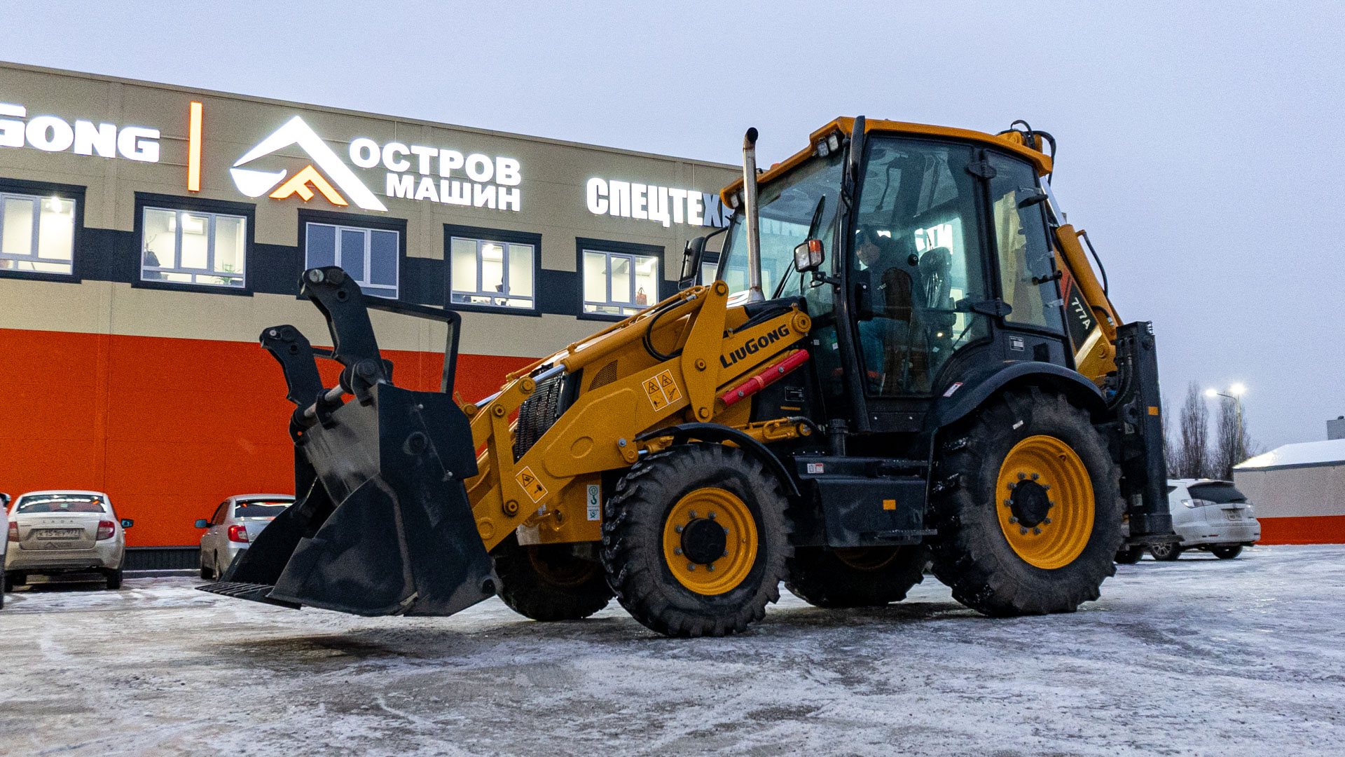 LiuGong CLG777A Perkins - это классический экскаватор-погрузчик с двигателем Perkins (знакомым многим по JCB 3CX) для строительных площадок на разновеликих колесах, с управлением на джойстиках. Задние колеса: 28". Передние колеса: 18". Объем фронтального ковша: 1 куб.м. Объем ковша обратной лопаты: 0,2 куб.м (стандарт).