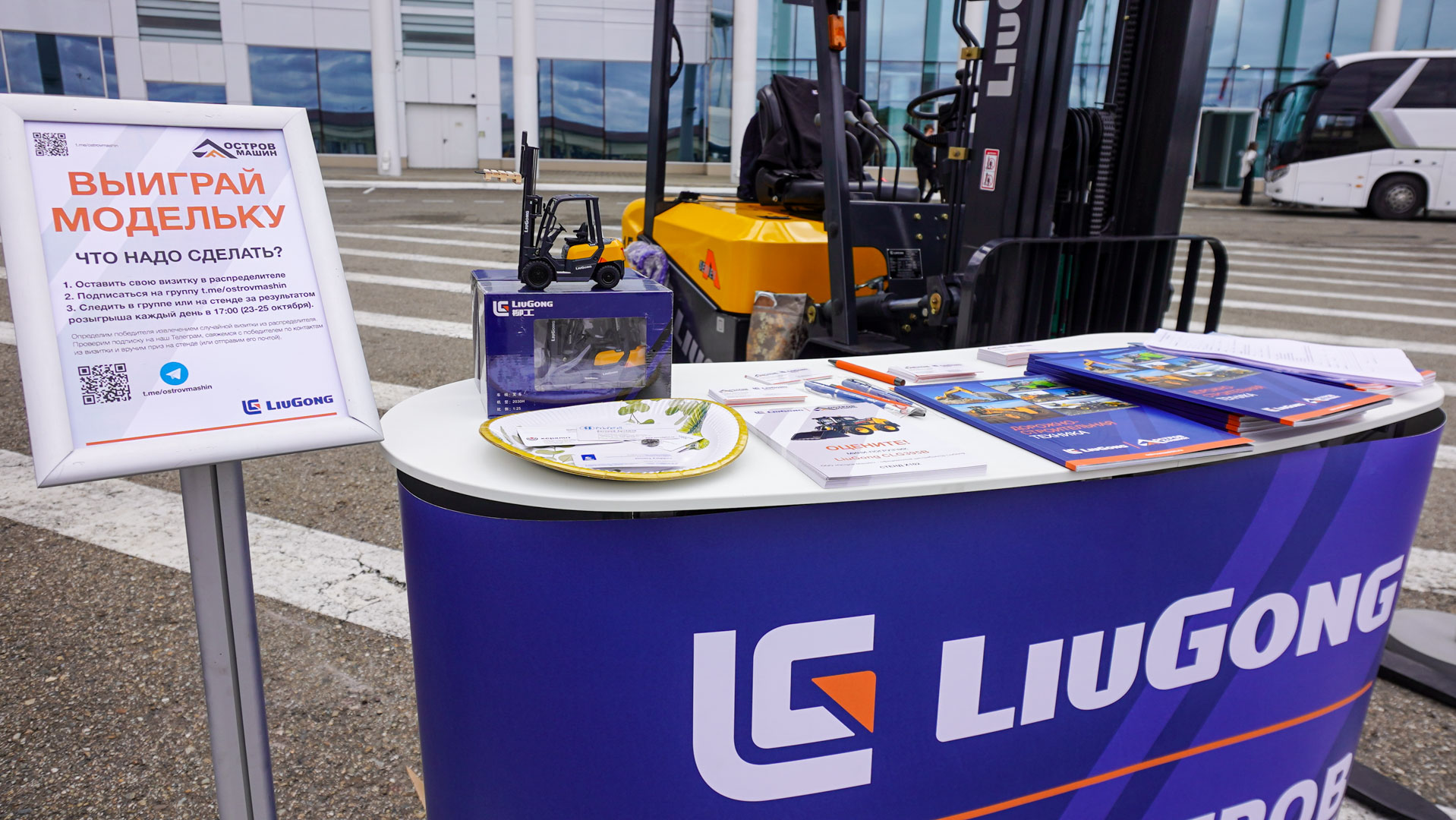 «ОСТРОВ МАШИН» — единственная компания, которая представила на выставке спецтехнику. На нашем стенде были показаны вилочный погрузчик LiuGong CPCD15 и мини-погрузчик LiuGong CLG395B, что вызвало интерес со стороны производителей сельскохозяйственной продукции, удобрений и кормов.