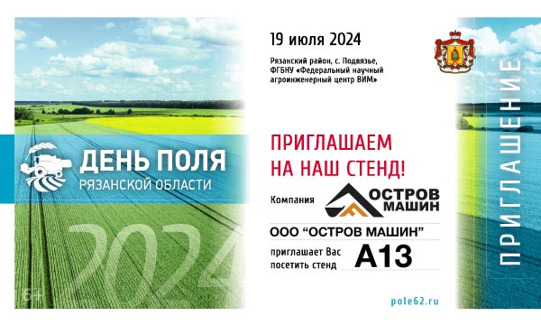 Приглашаем на стенд «ОСТРОВ МАШИН» на выставке «День поля Рязанской области 2024»