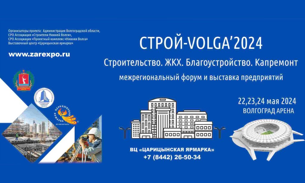 С 22 по 24 мая 2024 года в Волгограде на «ВОЛГОГРАД-АРЕНЕ» пройдёт выставка «СТРОЙ-ВОЛГА», посвящённая строительству, благоустройству и капитальному ремонту.