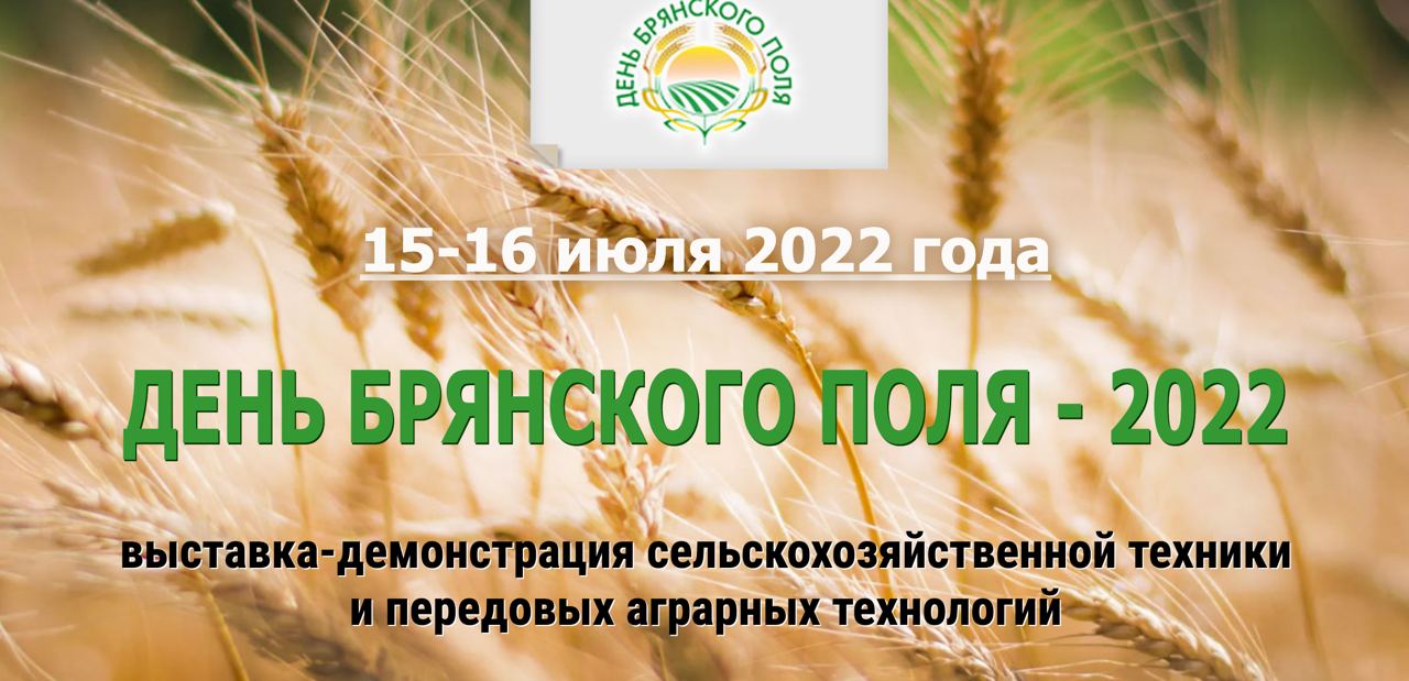 С 15 июля 2022 года по 16 июля 2022 года в Брянской области на базе Брянского государственного аграрного университета пройдёт ежегодная выставка-демонстрация сельскохозяйственной техники и передовых аграрных технологий «День Брянского поля 2022».